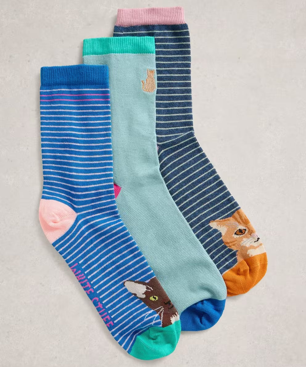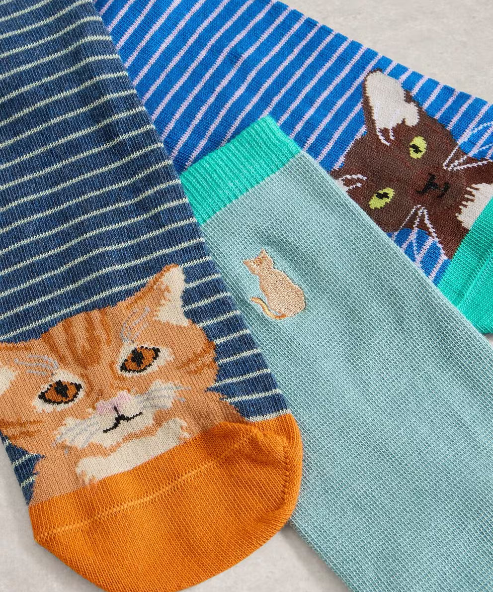 3pk Cat Pals Ankle Socks
