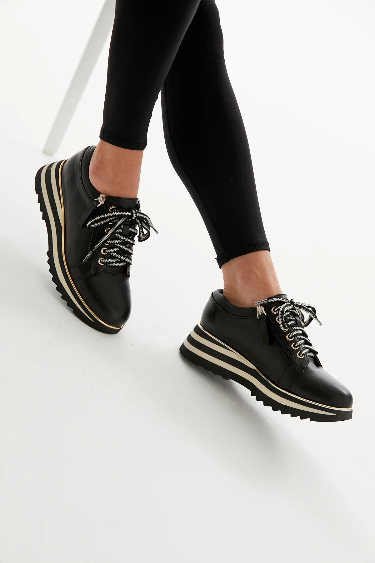 Crafted with a non-slip, light-weight flexible sole. Featuring a side zip lace up upper and latex stitched innersole. Combined with a classic cream leathered upper, complimentary striped sole and striped laces. The perfect casual/dress hybrid.
