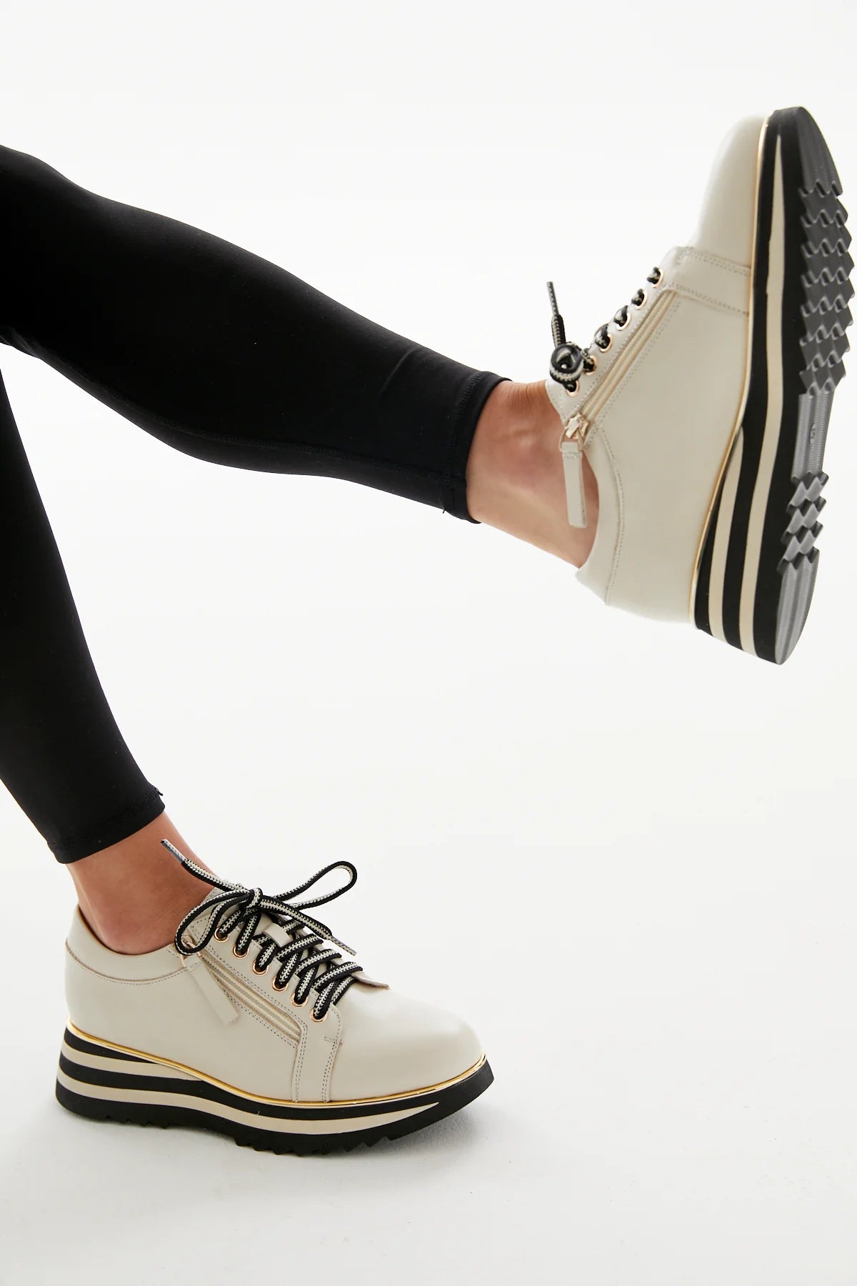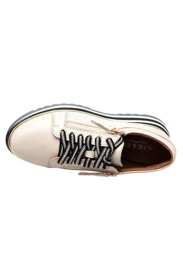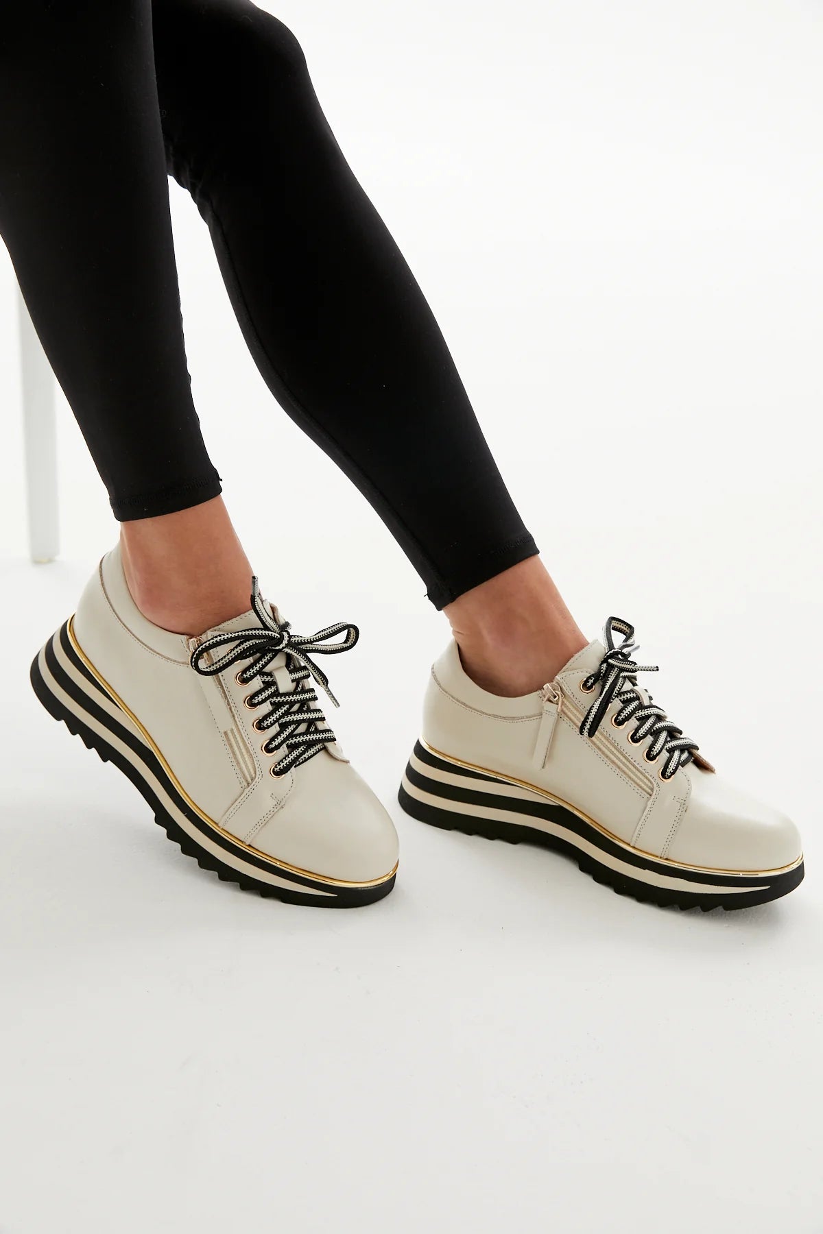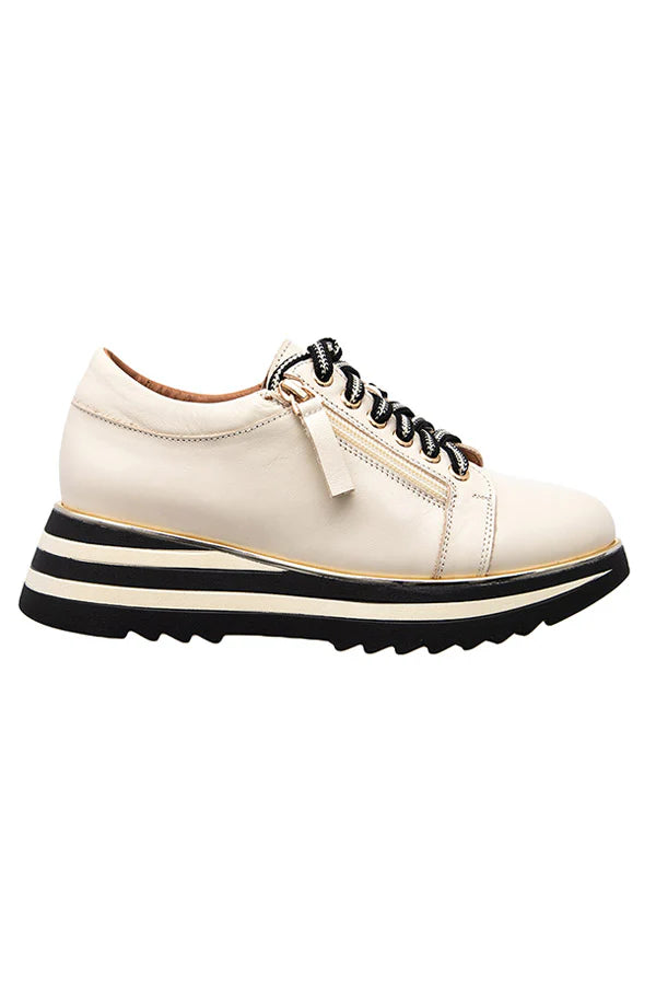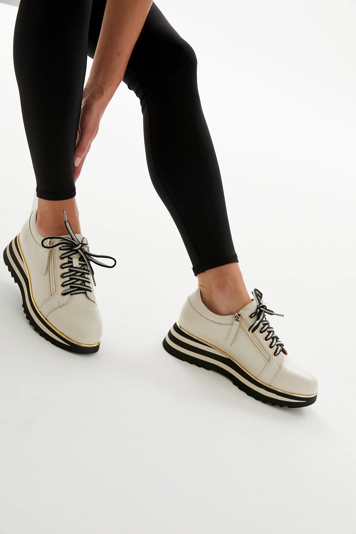 Crafted with a non-slip, light-weight flexible sole. Featuring a side zip lace up upper and latex stitched innersole. Combined with a classic cream leathered upper, complimentary striped sole and striped laces. The perfect casual/dress hybrid.