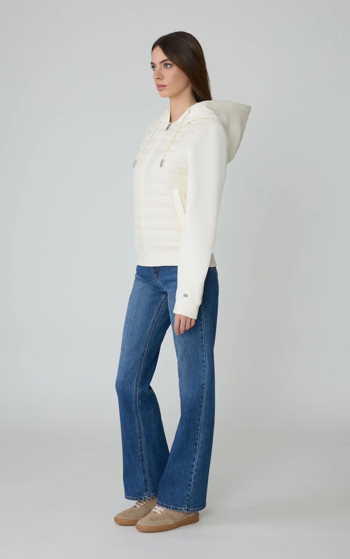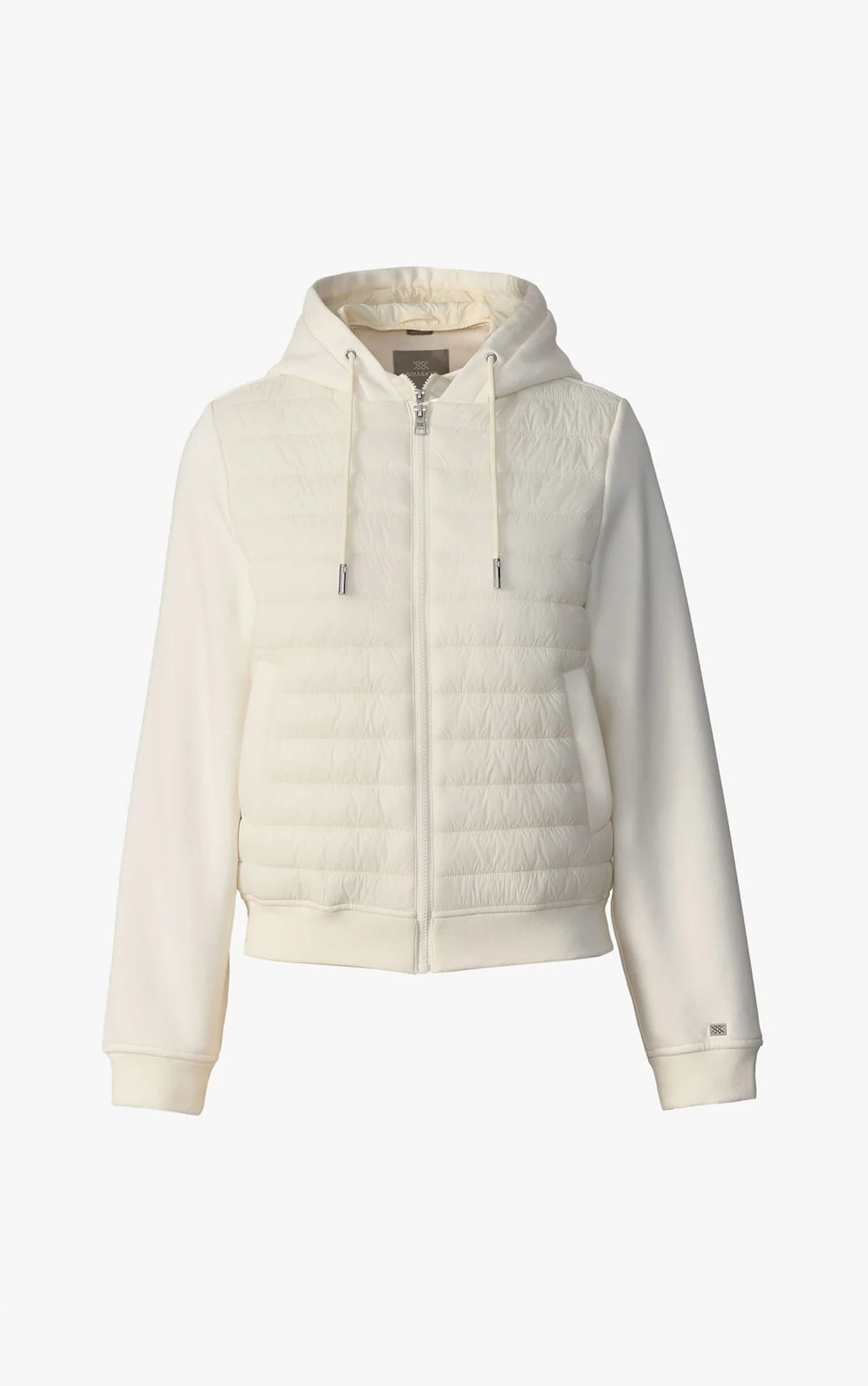 The LUCINDA by SOIA & KYO is a sleek and modern hybrid jacket. It features a quilted front body complemented by a soft fleece back, sleeves, and hood for ultimate comfort and mobility.