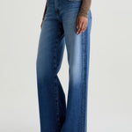 The Adria is a low-rise, wide-leg pant crafted from 10 oz. Daytripper Stretch Cotton Denim. Made with comfort-stretch for ease of movement, it sits comfortably at the waist and features busted hems for a naturally worn-in finish. Crafted from premium denim sourced from Japan’s Kaihara Mill.
