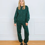 Our Oversized Jogger features a wide leg with a high-rise, drawstring waist, and two side pockets. It comes in our signature cotton-poly fleece blend that will keep you cozy all day, every day. Perfectly paired to our All Over Martini NYBF.