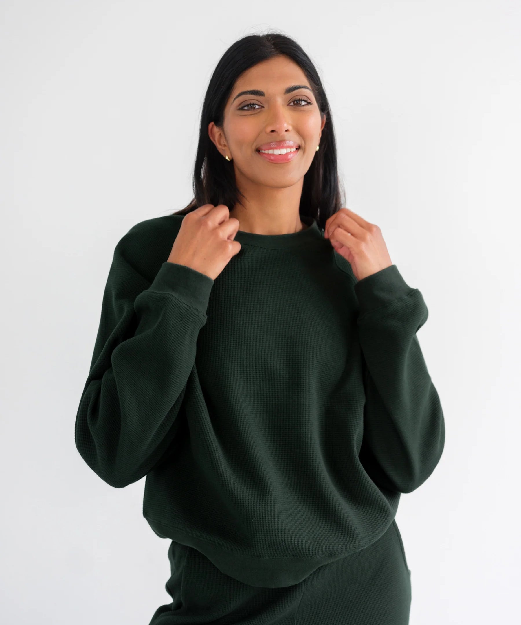 Waffle Wide Leg Pant - Forest Grn