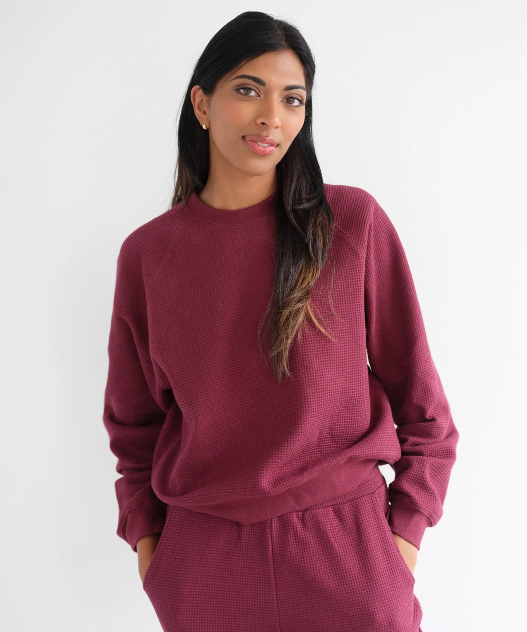 Waffle Raglan LS Top - Burgundy