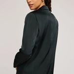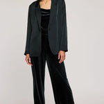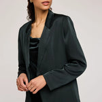 The Dione blazer is made of a luxe satin fabric and is fully lined for ease of wear. Features include a notched lapel and front button closure. Complete the look with the Amelie pant.