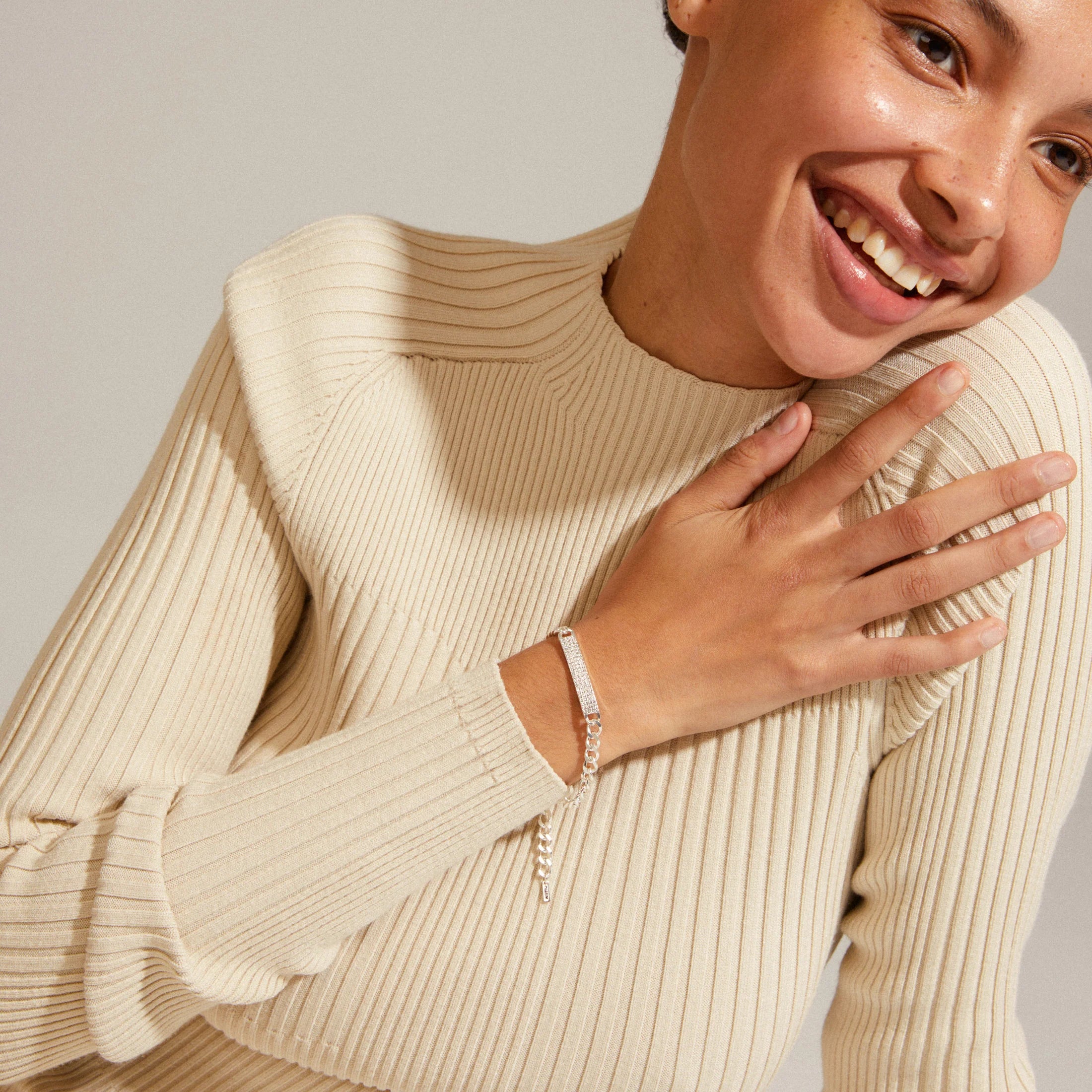 Hit the streets with style when you wear the curb chain bracelet from Pilgrim's HEAT series. A silver-plated bangle with a true urban street feel. The bracelet’s raw curb chain look signals true confidence, and shiny Preciosa crystals add an effortless touch of elegance. A must-have piece for the season's Y2K styles. A recycled item made from a min. of 75% recycled material.