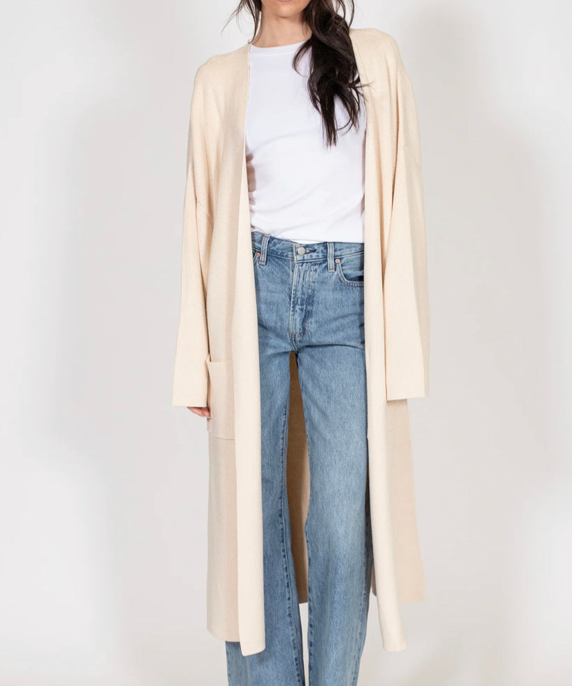 Matilda Ribbed Knit Maxi Cardi - Cream