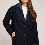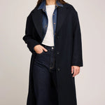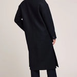 The Agatha coat is made of a soft, brushed melton fabric and is fully lined. Features include a front button closure, welt pockets, and side slits.