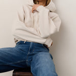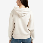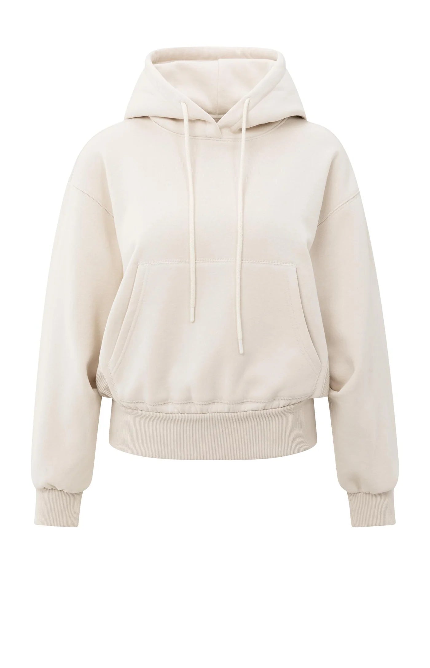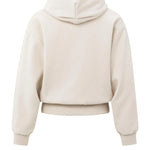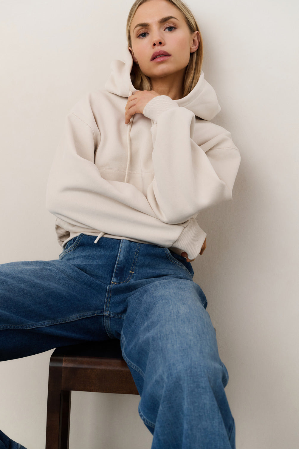 This comfortable hoodie features an oversized fit and a unique pleated hem that adds a feminine touch. Crafted from a soft cotton blend, it is finished with ribbed cuffs and hem, and a classic hood with drawstrings. A stylish piece that combines casual comfort with a contemporary look. The model is 175 cm and wears size S.