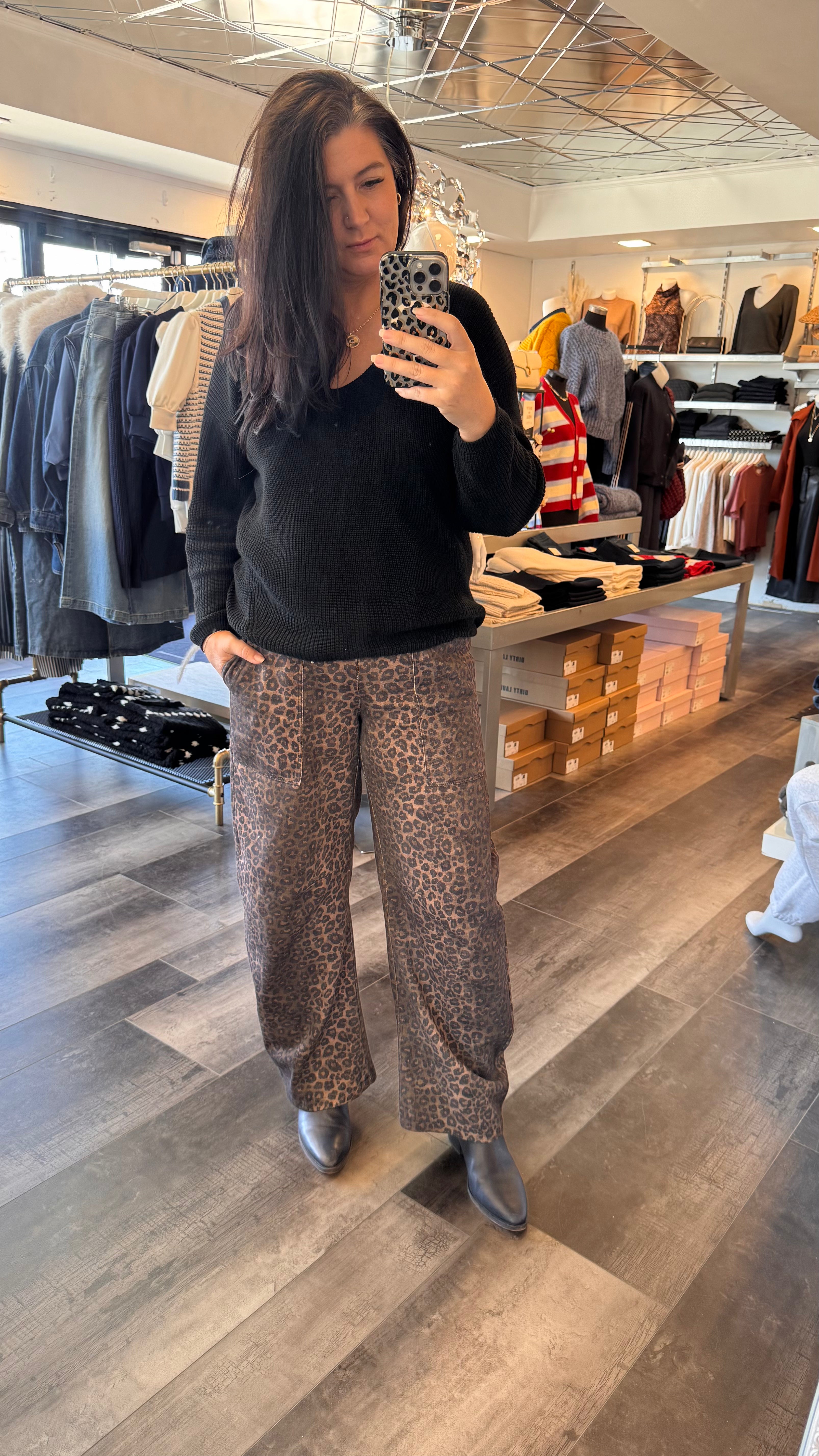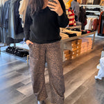 Add some wild style to your wardrobe with our Leopard Barrel Pull on Jean. Featuring a fierce leopard print and a comfortable elastic waist, these jeans will have you looking and feeling great. The unique barrel leg adds a playful touch to your everyday look. (Rawr!)