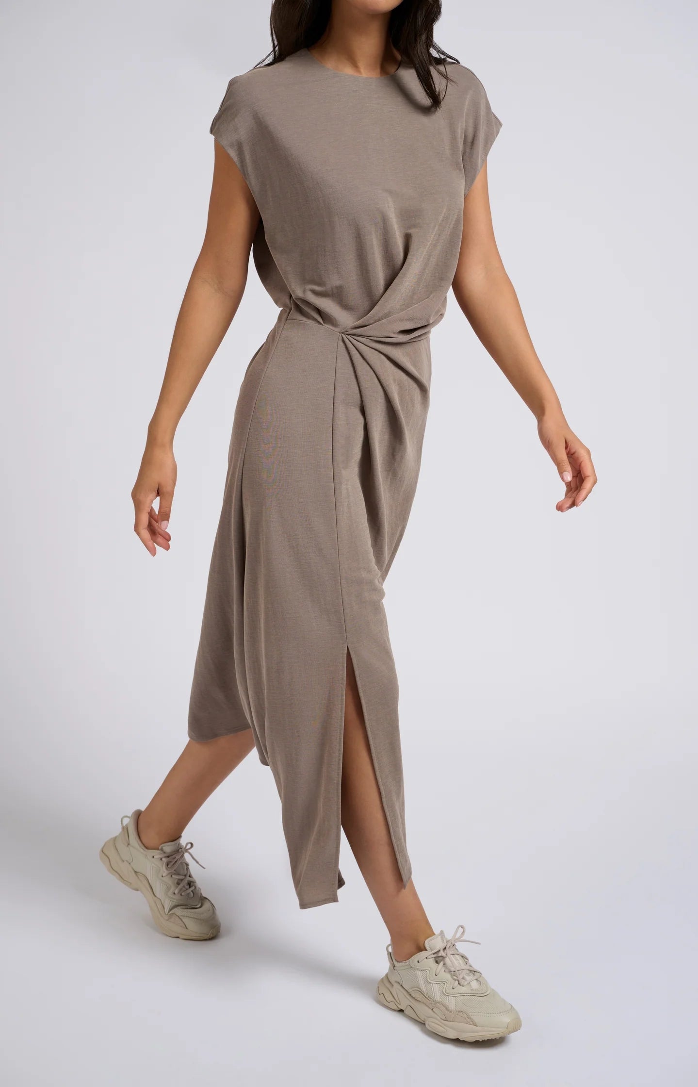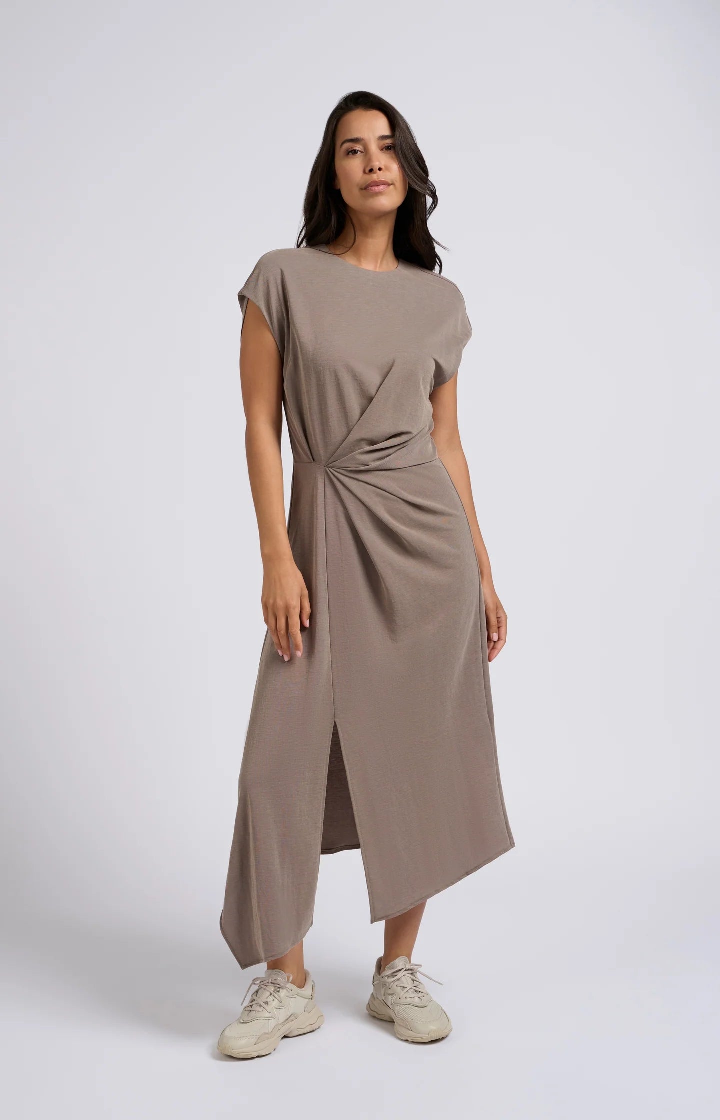 Midi Dress with Cap Sleeve - Clay Pebble