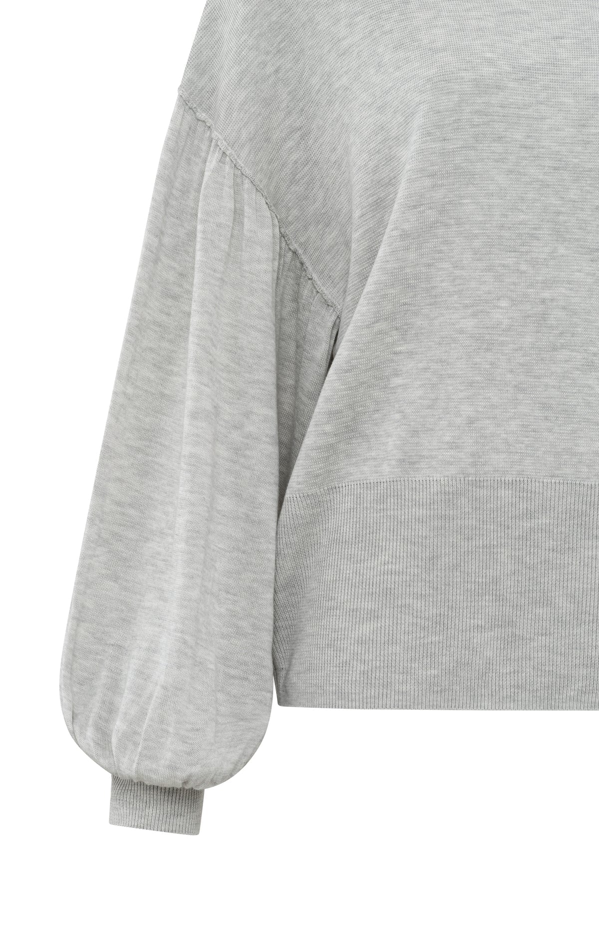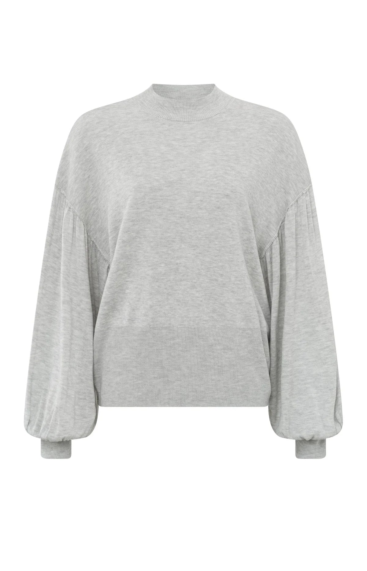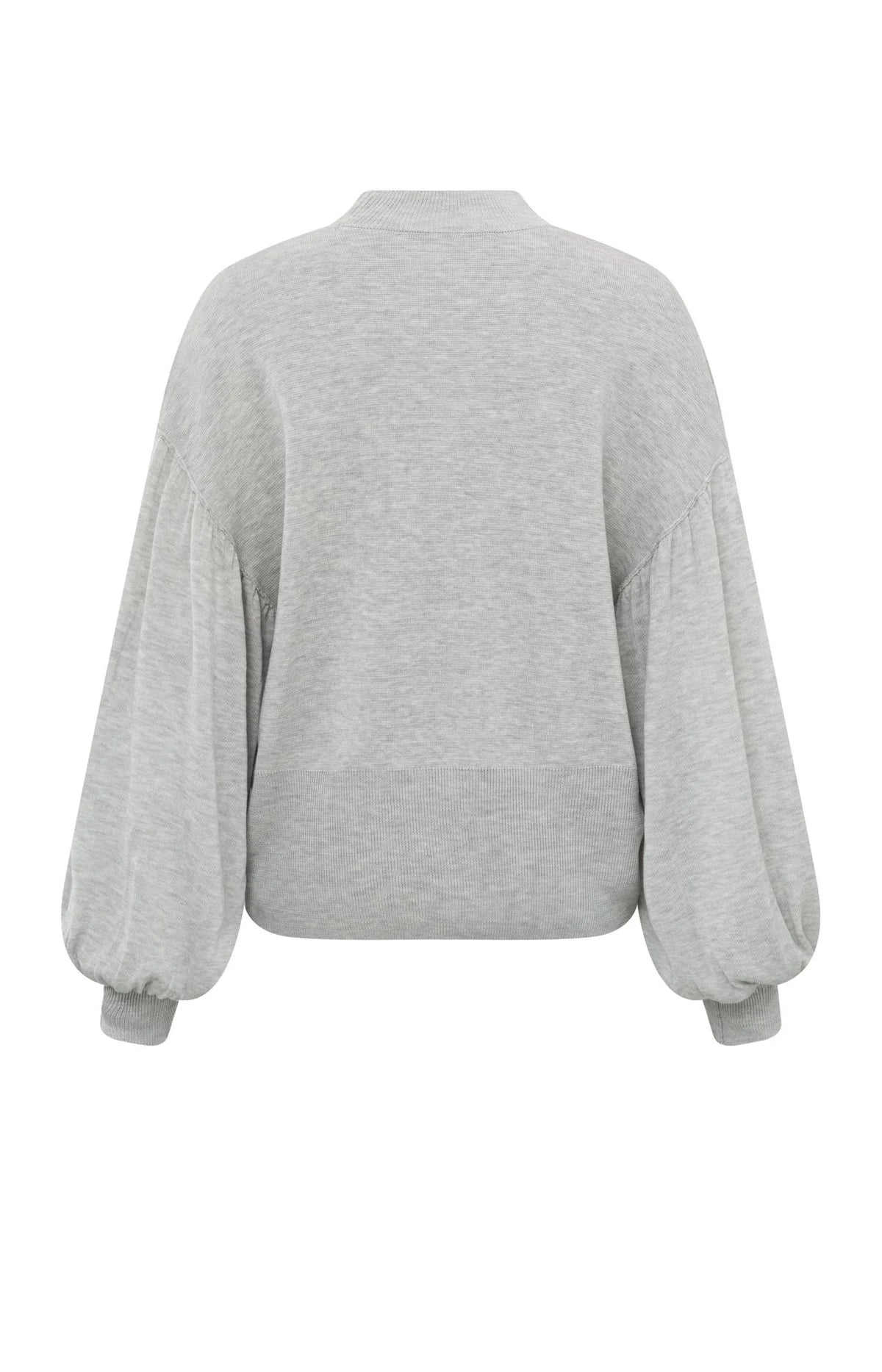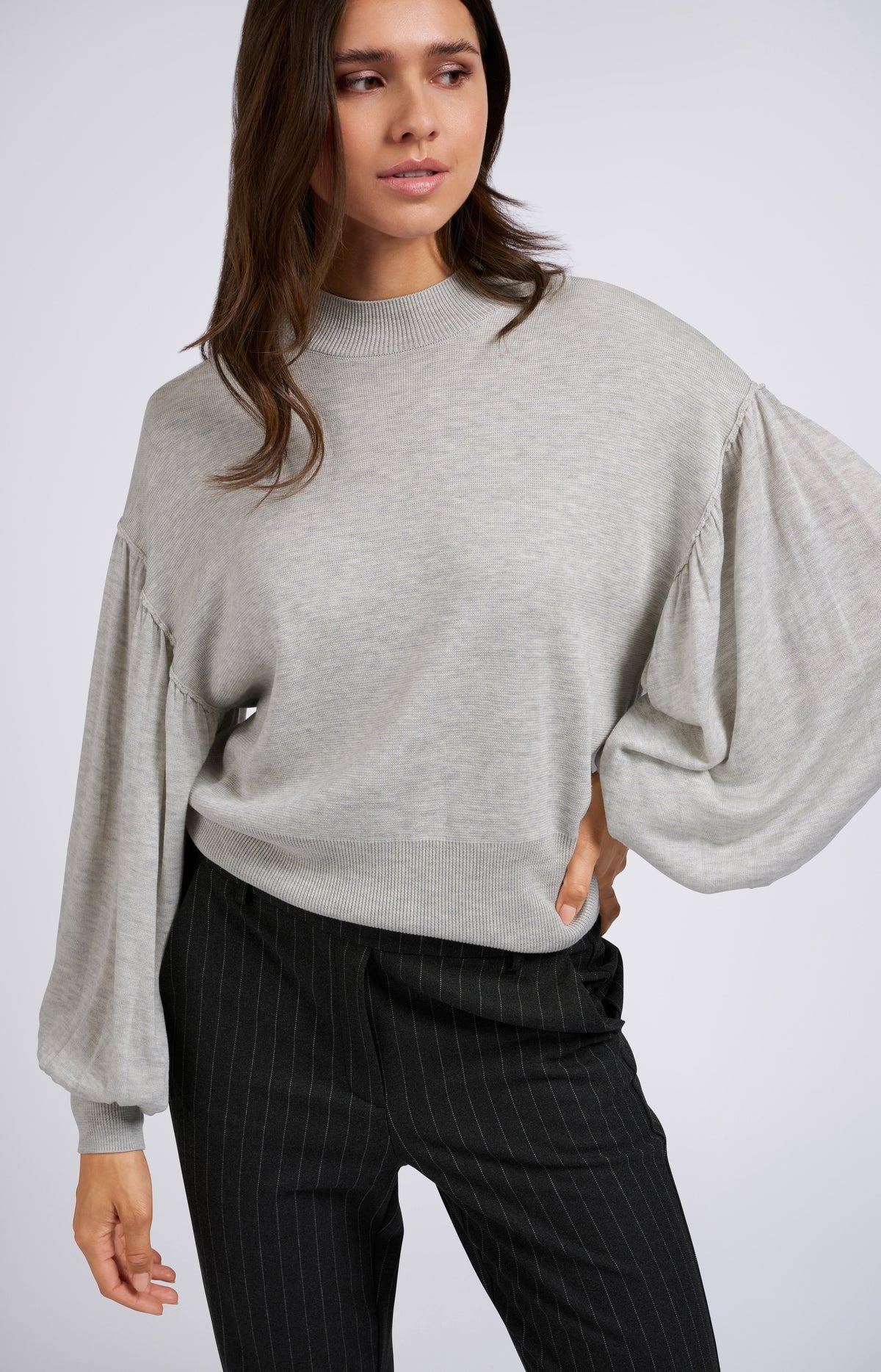 This comfortable oversized sweater features stylish puff sleeves and a turtleneck. Made from soft materials, this sweater offers both warmth and a trendy look. Perfect for a casual yet elegant look. Pair with skinny jeans for a complete outfit. Available in a fresh, soft green color and a calm melange gray color.
