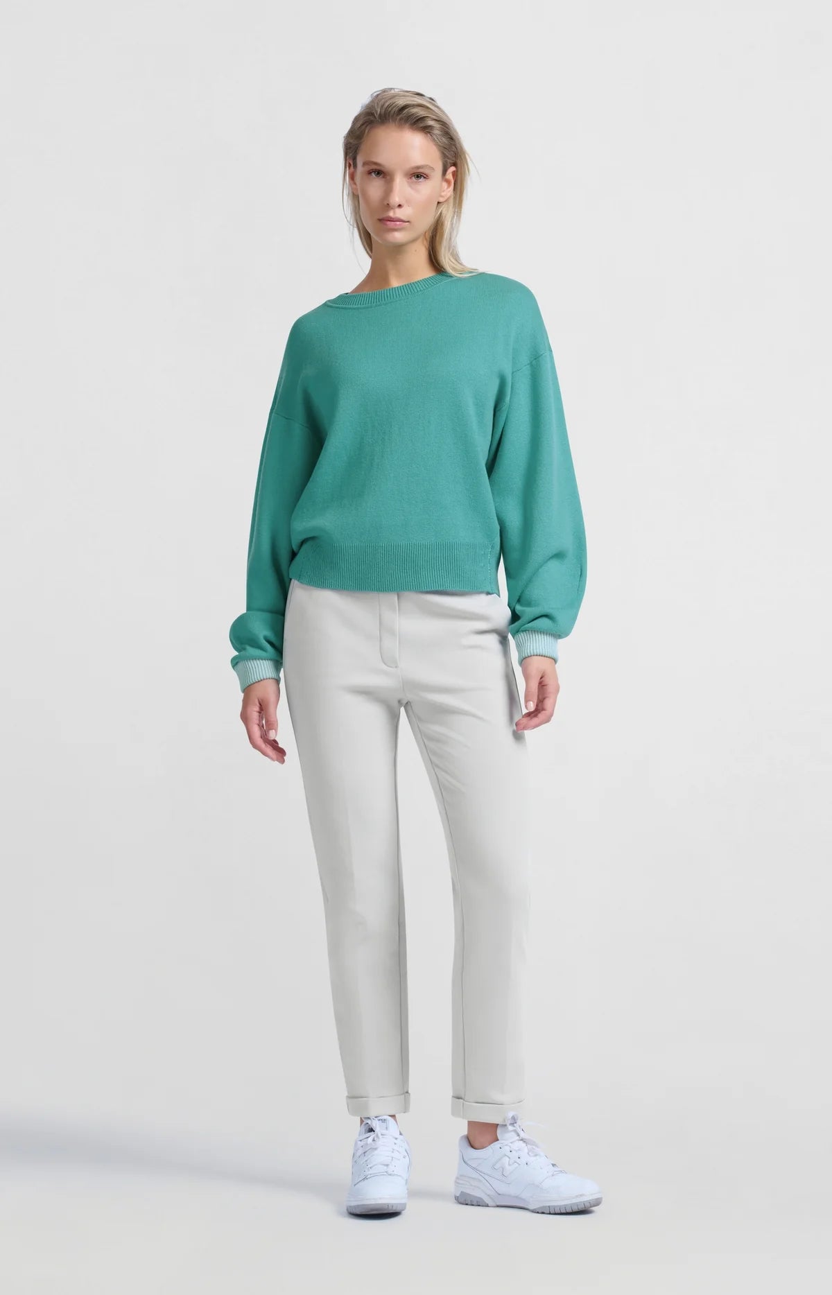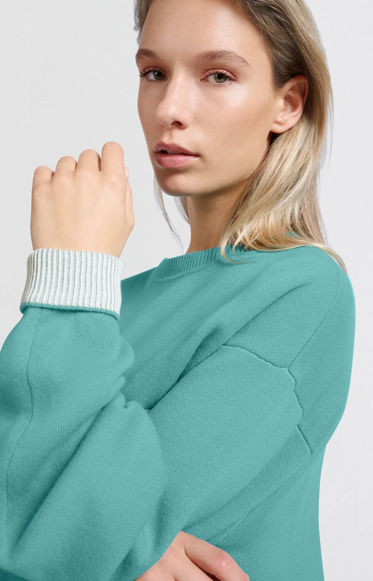 Sweater w/round neck & contrast trim