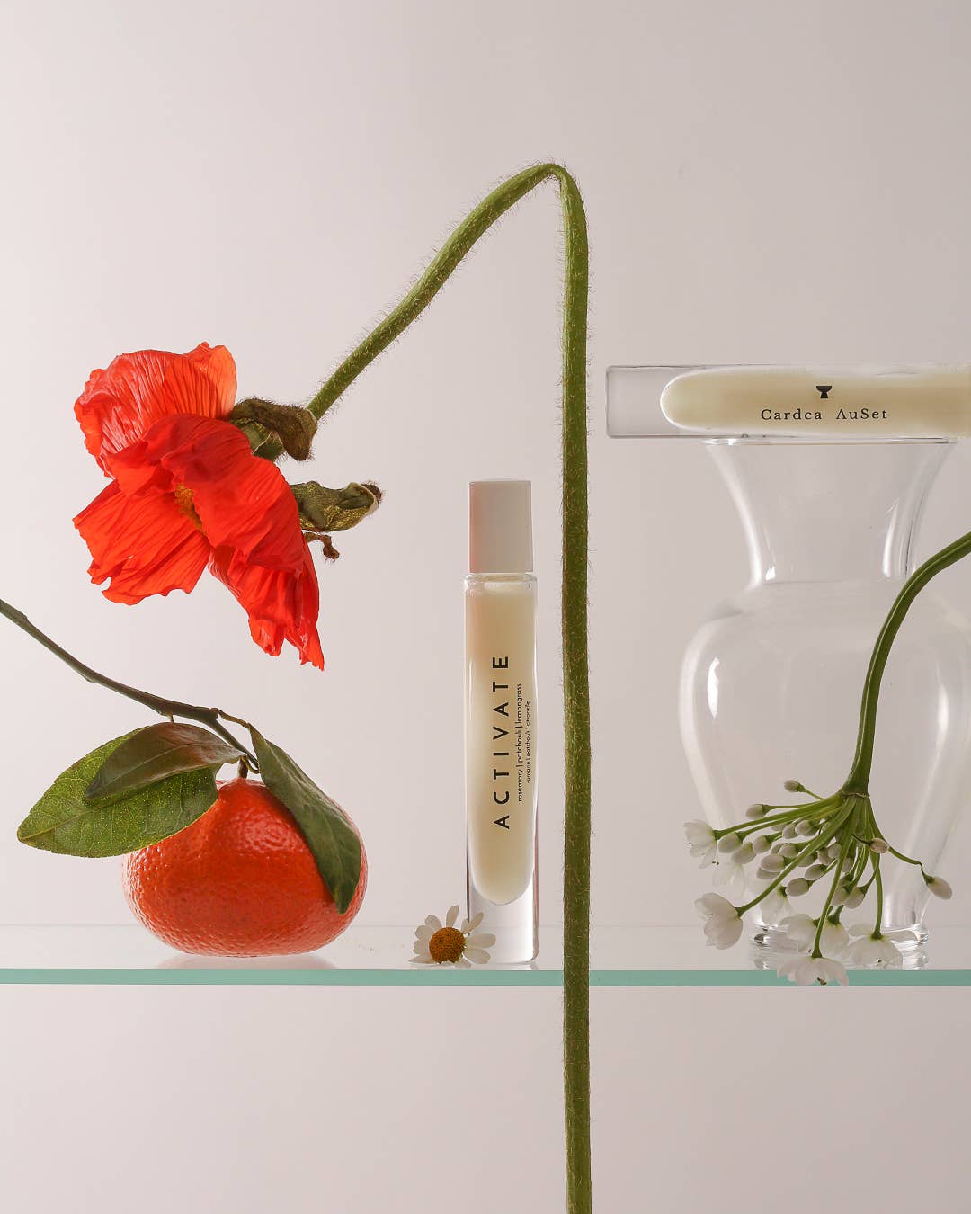 A roll-on version of our signature ACTIVATE Mood Mist - perfect for travel and on-the-go. Using aromatherapy, the mix of patchouli, lemongrass, and rosemary is ideal for giving you an extra boost in the morning. Roll-on before a workout, or when you’re struggling to focus mid-day.