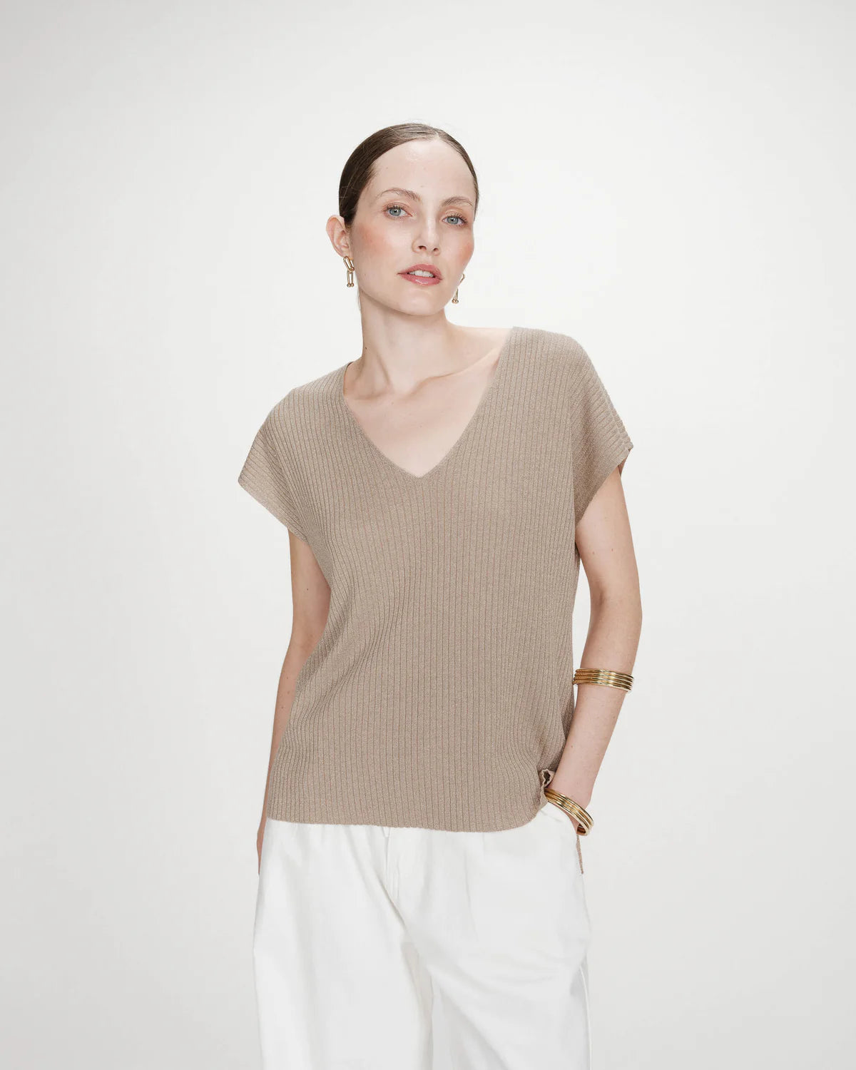 Complete the look: The VAPORO lurex top goes well with the PAX straight pants for a modern and structured look.