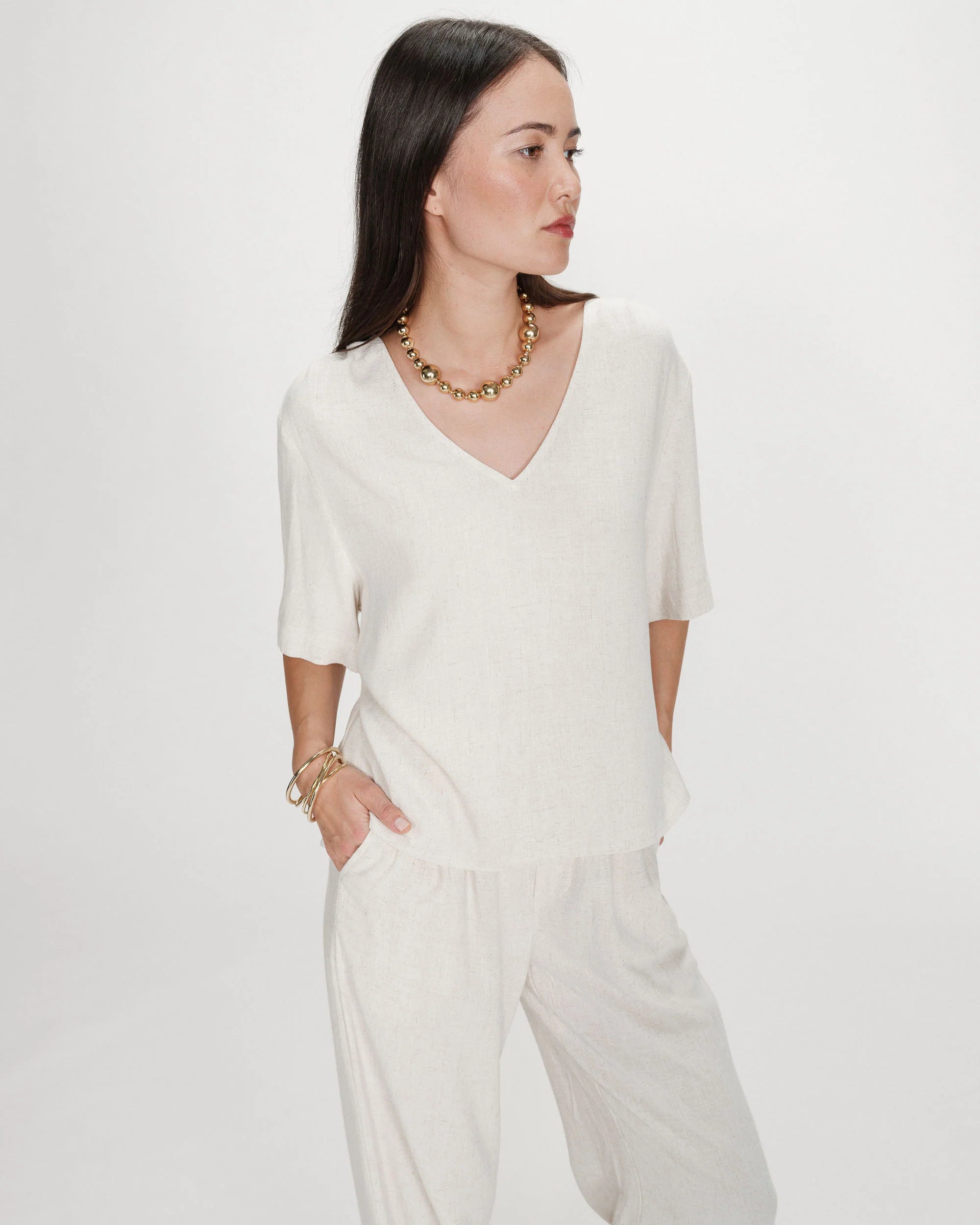 Style it with: The loose VIOLON top is worn with the Pompon Jeans or with the Raven Trouser for a feminine and relaxed silhouette.